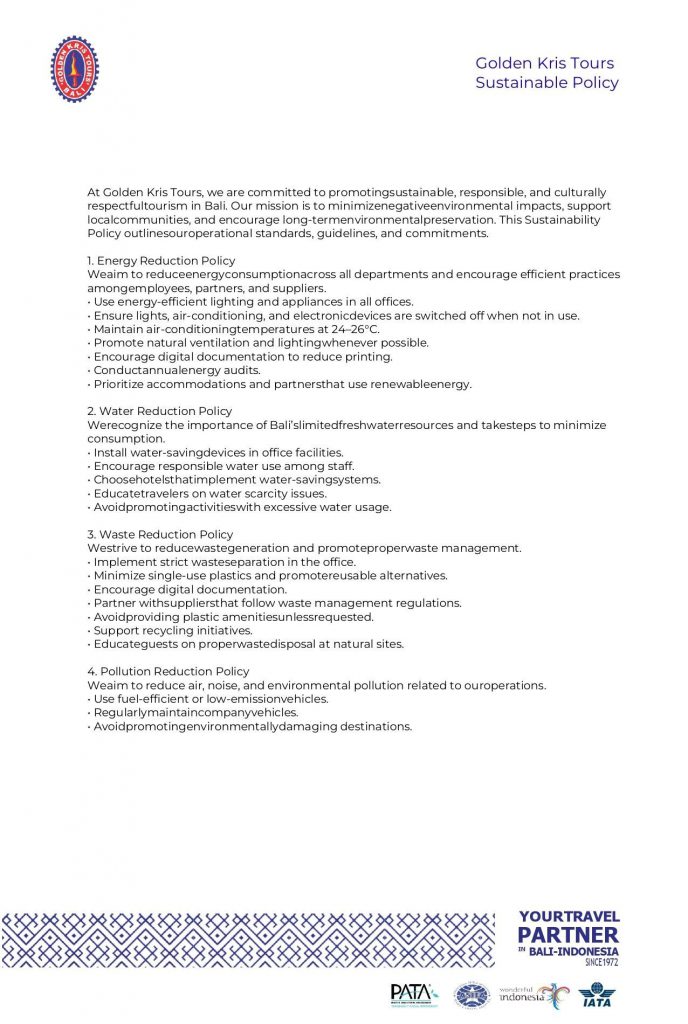 At Golden Kris Tours, we believe in creating a positive impact on our planet and communities. Our commitment to sustainability is at the heart of everything we do. We are dedicated to practices that are environmentally responsible, socially equitable, and economically viable.